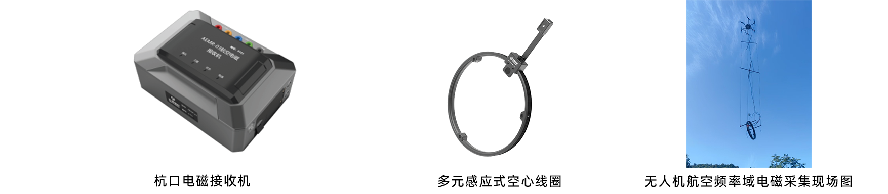 航空电磁接收系统主要由多旋翼无人机平台、航空电磁接收机、多元感应式空心线圈、悬吊系统、地面采集控制站等组成。地空电磁法是在地面使用大功率电磁发射机发射,接收装备安装在飞行平台上,实现了探测深度和效率之间的平衡,具有速度快、成本低、通行性好、覆盖范围大等优点,可用于复杂地形条件下的工程勘察、城市地下空间勘察、地质灾害预警和调查评估等多种工程应用领域。