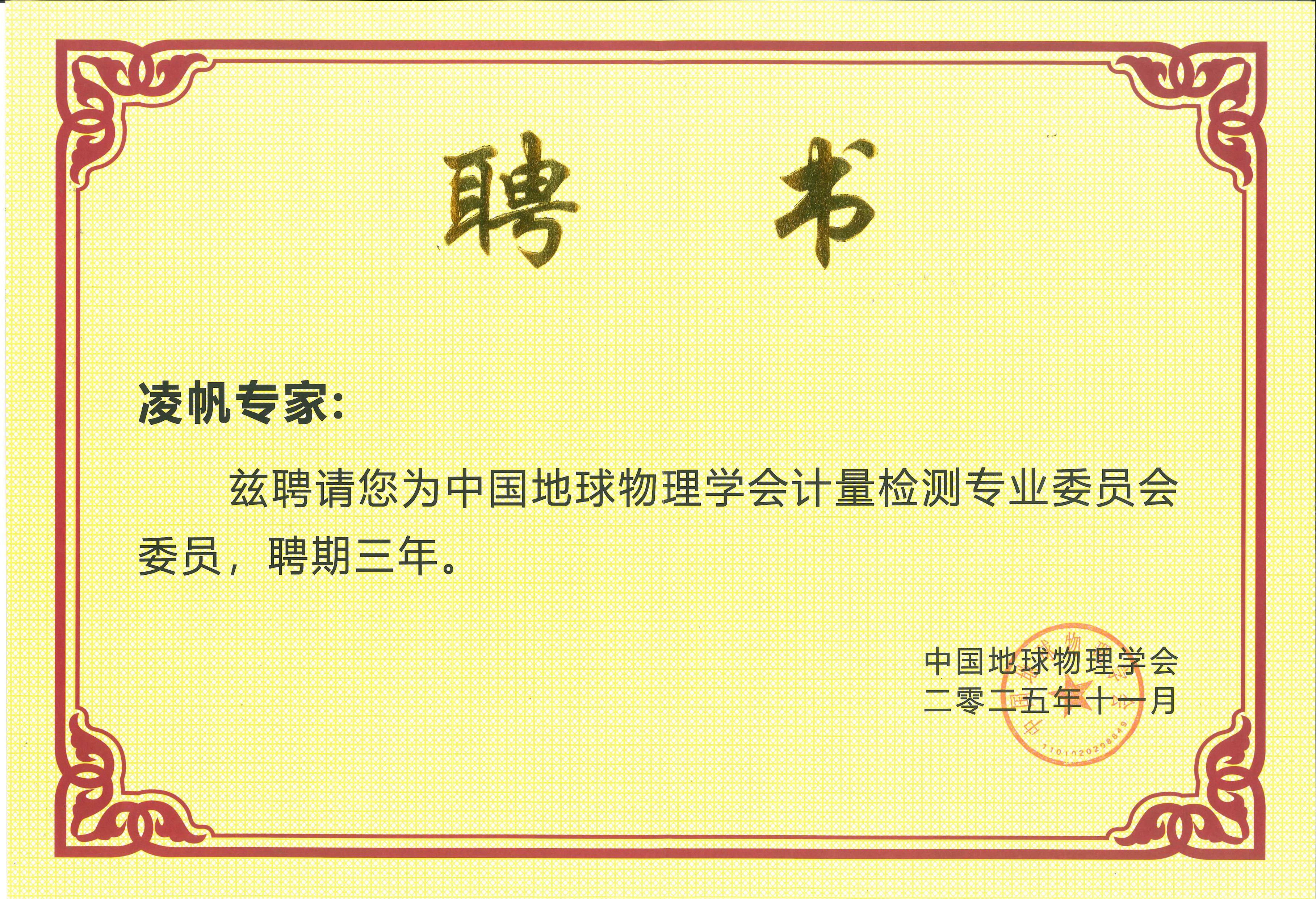 喜讯!凌帆总经理当选中国地球物理学会计量检测专业委员会首届委员